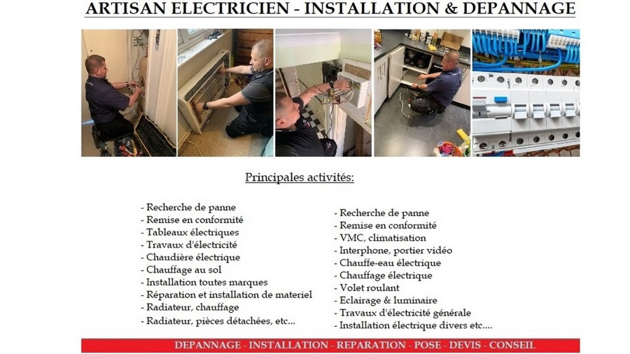 - Installation et réparation de matériel électrique de toutes marques (Legrand, Hager, Schneider...)
